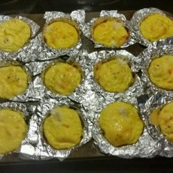 "These scrambled egg muffins with plenty of sausage and Cheddar cheese make a filling and fun treat at your next brunch. They're pretty, hearty, and fun to serve."