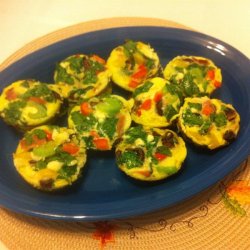 3Beat eggs in a large bowl. Stir in onion, green pepper, salt, pepper, and garlic powder. Mix in sausage and Cheddar cheese. Spoon by 1/3 cupfuls into muffin cups.