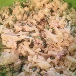 "A lower in carb version of my favorite baked potato salad. Most people when I serve this can't tell right away that this is made with cauliflower. Even my cauliflower hating husband enjoys this salad!"