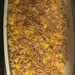 "Tuna, macaroni, creamy soup, cheese and fried onions are all you need to make this super easy tuna casserole that I learned from my roommate. It's great as leftovers, too."