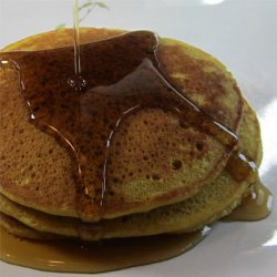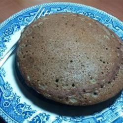 3Heat a griddle or large frying pan to medium-hot, and place 1 tablespoon of butter, margarine or oil into it. Let the butter melt before spooning the batter into the frying pan, form 4 inch pancakes out of the batter. Once bubbles form on the top of the pancakes, flip them over, and cook them on the other side for about 3 minutes. Continue with this process until all of the batter has been made into pancakes.