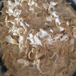 3Gradually whisk chicken broth into sauce and bring to a simmer, whisking constantly. Stir cooked chicken and sour cream into sauce, season with salt and black pepper, and mix with cooked noodles to serve.