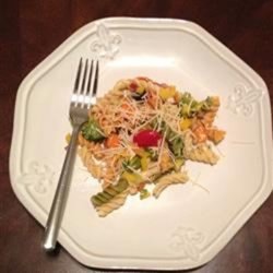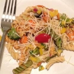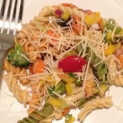 3Sprinkle Parmesan cheese, pepper, garlic powder and paprika over the vegetable mixture. Stir. Pour pasta into the large bowl and mix well. Refrigerate until cool or serve hot.