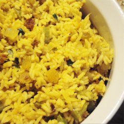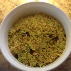5Remove rice from heat and stir in raisins, green onion tops, and celery mixture until well blended.