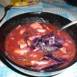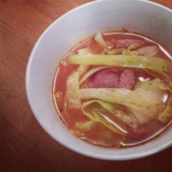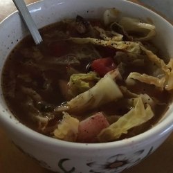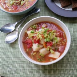 "This is a wonderfully simple chunky soup. I use good quality Irish back bacon but if you can't get this, it tastes equally good made with pancetta. The dark green colour of the cabbage alongside the tomatoes gives the soup a beautiful colour."
