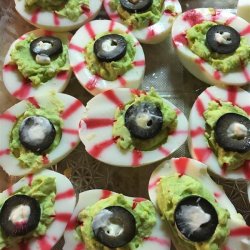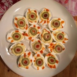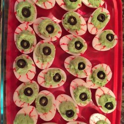 "Bubble, bubble. Toil and trouble. This appetizer is commonly known and used but, I have put my own little twist on this recipe. It is deviled eggs made to look like the eyeballs of a lizard. It a hit with the kids at my Halloween party. Watch them get eaten up at your party!"