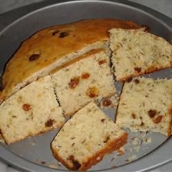 2In a large bowl, mix together the flour, sugar, caraway seeds, baking powder, salt, and baking soda until the mixture is well combined. In another bowl, whisk the eggs with the sour cream. Gently stir the sour cream mixture into the flour mixture until the dough just comes together; mix in raisins. Spoon the dough into the prepared springform pan.