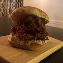 "Slow cooked shredded ham in a brown sugar and mustard sauce. This is the sort of thing you prepare a day or so in advance so that when you serve it you don't really have to do much of anything at all. Great for times when people will be in and out, eating irregularly all day."