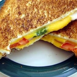 1Heat a large skillet over low heat. Spread butter or margarine onto one side of two slices of bread. Place both pieces buttered side down in the skillet. Lay a slice of cheese on each one, and top with slices of tomato, onion and jalapeno. Butter one side of the remaining slices of bread, and place on top buttered side up. When the bottom of the sandwiches are toasted, flip and fry until brown on the other side.