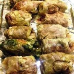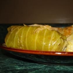 "For this satisfying dish, cabbage leaves are stuffed with a seasoned mixture of rice, ground beef, pork and ham. They are then laid on a bed of sauerkraut and simmered to completion. This is the best stuffed cabbage recipe I've ever tried."