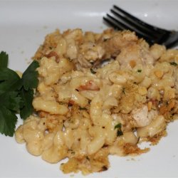 "A hearty macaroni and cheese dish jazzed up with garlic and chicken. I get requests for this at EVERY potluck! I experimented to get this dish after eating out at Dave and Buster's in Philadelphia, PA. This is my take on it."