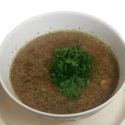 "This is a different twist on cabbage soup; I think normally it's plain. You can do cabbage soup without the meat and have a nice vegetarian dish as well."