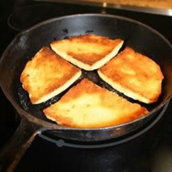 2Heat oil in skillet over medium high heat. Gently fry soda bread for 2 to 3 minutes on each side or until crisp and golden brown. Serve hot, seasoned lightly with salt.