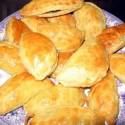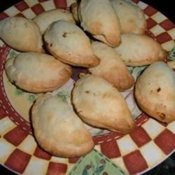 3Preheat the oven to 350 degrees F (175 degrees C). On a lightly floured surface, roll the dough out to about 1/4 inch thickness. Cut into 3 inch rounds. Place a small amount of the mushroom mixture on one side of each circle, then fold the dough over and press to seal. Prick the tops with a fork to vent steam, and place the pastries on a baking sheet. (They can also be frozen at this time until needed.)