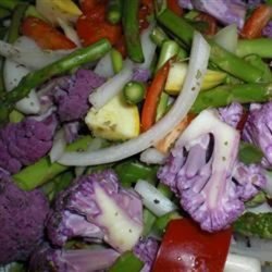 1Place the water, bell peppers, cabbage, cauliflower, and onion in a large pot over medium-high heat. Cover and steam until the vegetables are tender, about 10 minutes. Pound each piece of the chuck to 1/2 inch thick, cut into quarters. Heat 1 tablespoon of olive oil in a skillet over medium-high heat. Stir in beef, and cook, turning frequently, until browned on all sides; remove from pan.