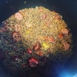 2Mix quinoa into sausage mixture; cook and stir until quinoa is slightly toasted, about 1 minute. Pour broth and marinara sauce over quinoa mixture. Cover skillet and simmer until quinoa is tender, about 15 minutes.