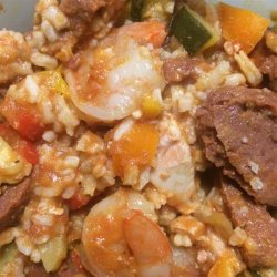 2Mix green bell peppers, zucchini, tomatoes, chicken broth, rice, Worcestershire sauce, and bay leaf into onion-sausage mixture; bring to a boil. Reduce heat and simmer until rice is tender and mixture is thickened, about 15 minutes.