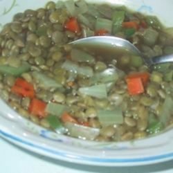 To cut the time of this recipe in half, don't roast the peppers, add them to the saucepan when frying the other vegetables. Use ready-to-eat, canned lentils.