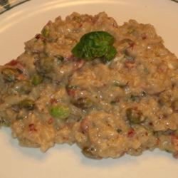 "I put these ingredients together in hopes of creating a vegetarian friendly meal high in protein and using goat cheese and risotto (two of my favorite foods!). The result: a delicious, satisfying, elegant meal for two! Mmmmm!"