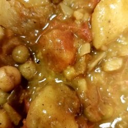 2Meanwhile, heat the vegetable oil in a large skillet over medium heat. Stir in the onion and garlic; cook and stir until the onion has softened and turned translucent, about 5 minutes. Season with cumin, cayenne pepper, curry powder, garam masala, ginger, and salt; cook for 2 minutes more. Add the tomatoes, garbanzo beans, peas, and potatoes. Pour in the coconut milk, and bring to a simmer. Simmer 5 to 10 minutes before serving.