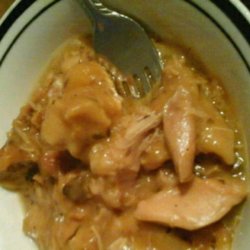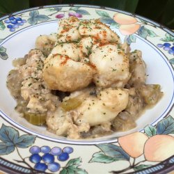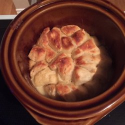 3Arrange torn biscuit dough on top of chicken mixture; continue cooking until dough is cooked through, about 30 minutes more.