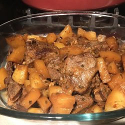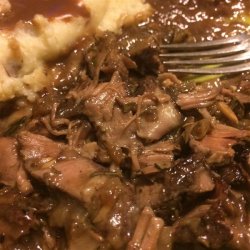 6Remove lamb to a serving platter. Carefully drain liquid from baking dish into a saucepan and place over medium heat. Beat cornstarch and water together in a bowl using a whisk to assure no lumps remain; stir into the liquid in the saucepan. Add Worcestershire sauce and cook until the liquid thickens into a gravy, about 5 minutes.