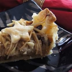 2Place apples, butter, and lemon juice into a saucepan over medium heat, and cook, stirring often, until the apples are tender, 8 to 10 minutes. Stir in sugar, cinnamon, nutmeg, and vanilla extract. Mix in the mincemeat and walnuts until thoroughly combined, and set the pie filling aside.
