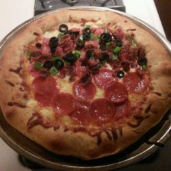 "This recipe yields a crust that is soft and doughy on the inside and slightly crusty on the outside. Cover it with your favorite sauce and topping to make a delicious pizza."
