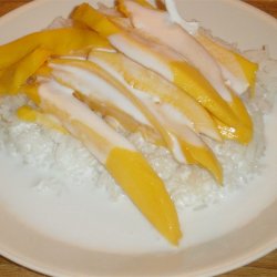 2Mix the desired amount of sugar into the hot rice. Portion the rice into 4 bowls. Top with mango slices, and pour some cream of coconut over the top of each bowl.