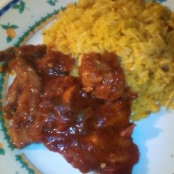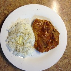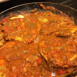 2Heat the oil in a skillet over medium heat, and brown pork chops on both sides. Remove chops from heat and set aside. Place the onion and green bell pepper in the skillet, and saute 2 to 3 minutes. Return pork to skillet, and cover with the tomato puree mixture. Cover skillet, and continue cooking 30 minutes, or to desired doneness.