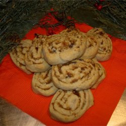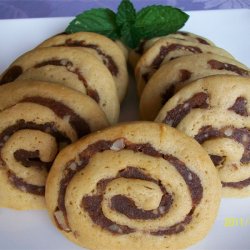 4Working with one portion at a time, roll out the dough on a lightly floured surface to make a rectangle about 1/4 inch thick. Spread 1/3 of the filling evenly over the dough; roll up to make a log. Repeat the process with the remaining dough. Refrigerate until firm, about 1 hour.