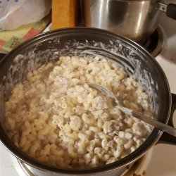 "This is a recipe handed down from my grandmother to my father. It's a very unique creamy white-sauce goulash that takes about 20 minutes to make. A real winner with kids. My family's favorite!!! Give it a try. Lemme know how you like it."
