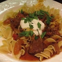 1Melt shortening in a large pot over medium heat. Cook beef in hot shortening until completely browned, 5 to 7 minutes. Stir onion, garlic, paprika, salt, and pepper into the beef; cook and stir 5 minutes more.