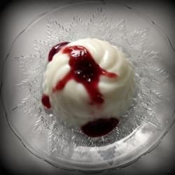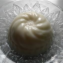 1Combine gelatin with boiling water, stirring until dissolved. Stir in sugar, milk, and almond extract. Pour into a 9 inch square pan and refrigerate overnight. Cut into cubes and serve with fruit cocktail.