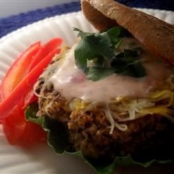 "These hearty and filling burgers are made with black beans and rice. Dressed up with a salsa and sour cream sauce, even your meat-and-potatoes man will love them."