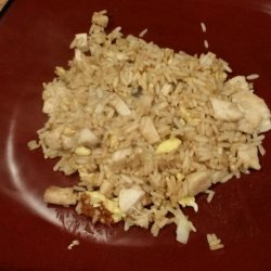 "A simple way to make fried rice that is better than in some Chinese restaurants! Boneless chicken breasts are stir fried with white rice, scrambled eggs, mushrooms, green onions and soy sauce."