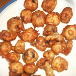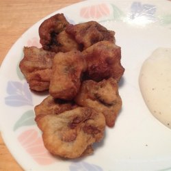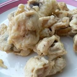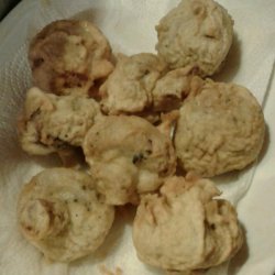 3Dip mushrooms into the batter and then place in the hot oil. Fry a few at a time so they are not crowded, until golden brown, 3 to 5 minutes. Remove from oil with a slotted spoon and drain on paper towels.