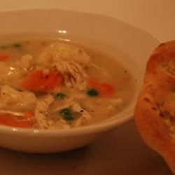 3Remove chicken, debone, take off skin, chop the chicken meat and return to pot. Heat through and serve.