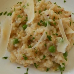 5Stir mixture, adding water if necessary, until rice is cooked and a little chewy at the center, the liquid is creamy, and the flavors of the new ingredients have melded in, about 5 minutes. Stir in 1 cup of Parmesan cheese, peas and/or parsley. Adjust seasonings, including salt and pepper, to taste.