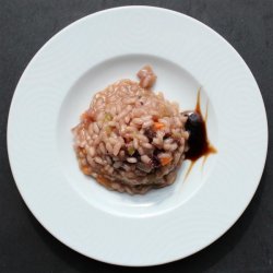 2Cook and stir rice into prosciutto mixture, stirring continually, until rice is translucent around edges, 1 to 2 minutes. Pour red wine into rice mixture; cook, stirring every 30 seconds, until wine is absorbed, about 5 minutes. Stir 1 cup broth into rice mixture, cooking and stirring until broth is almost completely absorbed, 3 to 5 minutes. Continue adding 1 cup broth at a time, stirring constantly, until rice is tender, 15 to 20 minutes.