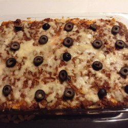 3Spread a thin layer of the meat mixture in the bottom of a 4 quart casserole dish. Cover with a layer of tortillas followed by more meat mixture, then a layer of cheese. Repeat tortilla, meat, cheese pattern until all the tortillas are used, topping off with a layer of meat mixture and cheese.