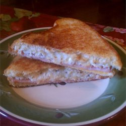 "I always make this sandwich after the holidays when I can get get ham right off the bone. Any other time of the year, I get thick cuts from my local deli. This is my daughter's favorite sandwich and I usually reserve it for special occasions. Enjoy :)"