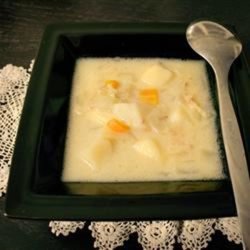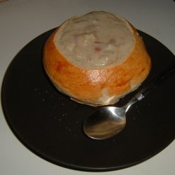 1In a large saucepan over medium high heat, saute the bacon for about 7 minutes, or until lightly browned. Reduce heat to medium, add the butter or margarine and onions and saute for about 5 minutes, or until onions are tender. Add the flour and stir well for one minute.