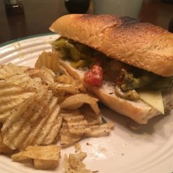 "Tender chunks of chicken breast are cooked together with onion, zucchini, mushrooms, bell pepper, and pesto sauce for a flavorful sandwich filling that will satisfy a hungry crowd."