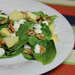 Sprinkle apple, goat cheese, and walnuts over the spinach.