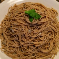 "A tasty spaghetti with olive oil instead of the traditional tomato sauce. This is great with bread topped with the olive oil sauce and Provolone cheese that's been toasted in the oven."