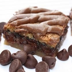 5To make the glaze: In a small saucepan over medium heat, mix together the cocoa, 4 teaspoons butter, and boiling water. Cook over low heat, stirring occasionally, until thick and smooth. Remove from heat and stir in the confectioners' sugar. Drizzle over cooled bars before cutting into squares.