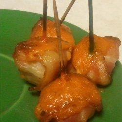 2Wrap single pieces of bacon around individual water chestnuts, securing with a toothpick.