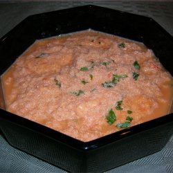 1In saucepan, heat olive oil. Add red pepper and onion; saute on low heat until soft, 15 to 20 minutes, stirring occasionally. Add shrimp, half-and-half, tomato sauce, hot sauce, salt and pepper. Bring to a boil, reduce heat and simmer 5 minutes. Add butter.
