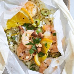 6Open packets carefully, being careful to avoid steam. Slide shrimp and rice mixture into bowls. Garnish with almonds and parsley.